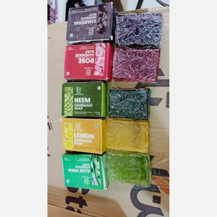 فیروزهای : صابون دستساز با عصاره آلوئهورا که معمولاً برای نرمی و رطوبت پوست مفید است.