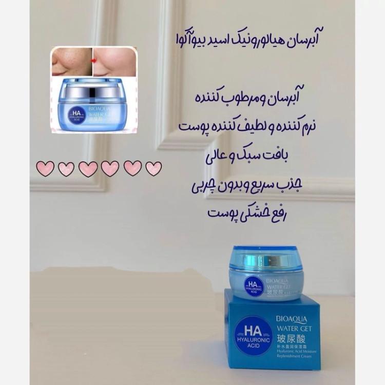 کرم ترمیم کننده هیالورونیک اسید بیوآکوا ترمیم کننده وضدلک ضدپیری وضدچین وچروکو شاداب کننده پوست